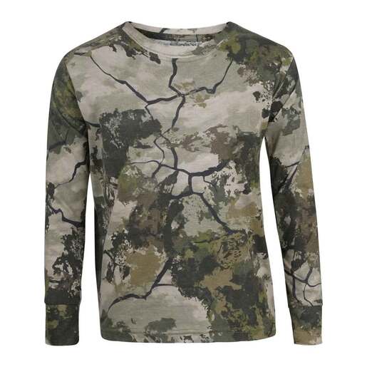 Kings Camo Youth KC Ultra Classic Long Sleeve Hunting Shirt- The classic long sleeve shirt is made for comfort for boys and girls who love the hunt. 60/40 Cotton Poly blend Jersey Tagless label Rib-knit collar Camo sleeve cuffs Style: KCK204-KCU