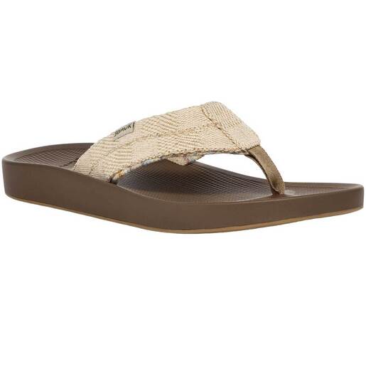 Sanuk Men's Cosmic Yoga Mat Flip Flops - Sanuk's new Cosmic Yoga styles sling you into galactic levels of comfort with responsibly sourced leather, recycled materials, and real yoga mat foam. Frayed Canvas Strap Edge Detail for a Worn Look Happy U outsole 60% Cotton, 40% Hemp Footbed Made From Real Yoga Mat! Style: 1139392