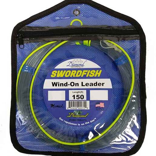 Diamond Fishing Products Wind-On Swordfish Leader - Diamond’s high strength monofilament and fluorocarbon combined with a low stretch dyneema loop creates the strongest, most dependable wind-on leader in the world. Diamond’s Wind-On leaders are attached with a loop to loop connection to your fishing line. The wind-on system improves bait presentation, eliminates the need for conventional long leaders and provides safer handling and releasing of fish at the boat.