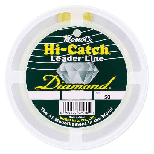 Momoi Hi-Catch Diamond Monofilament Leader Keeper - These 50 yard Leader Keepers of Momoi’s Diamond Hi-Catch Monofilament are just the right fit for your tackle box. This premium performing leader is formulated with a tougher finish for superior abrasion resistance and offers tremendous tensile strengths of up to 200% of stated line tests. Plus, the unique leader keeper not only protects the line, but also ensures quick availability when the action is hot!