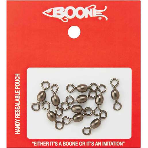 Boone Bait Black Crane Swivel - Designed to eliminate line twist, the crane swivel is similar to the barrel swivel. The eyepiece ends inside the swivel not on the outside. This gives the swivel much better performance under tension from a heavy load.