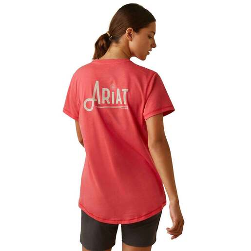 Ariat Women's Rebar Workman Graphic Logo Short-Sleeve Work Shirt - Easy to work in and cut with a drop tail hem to provide additional coverage and protection when bending and kneeling. 60% Cotton / 40% Polyester Reinforced pockets Breathable mesh paneling Contrast top stitching Drop tail hem Hidded pen/pencil slot Style: 10043306