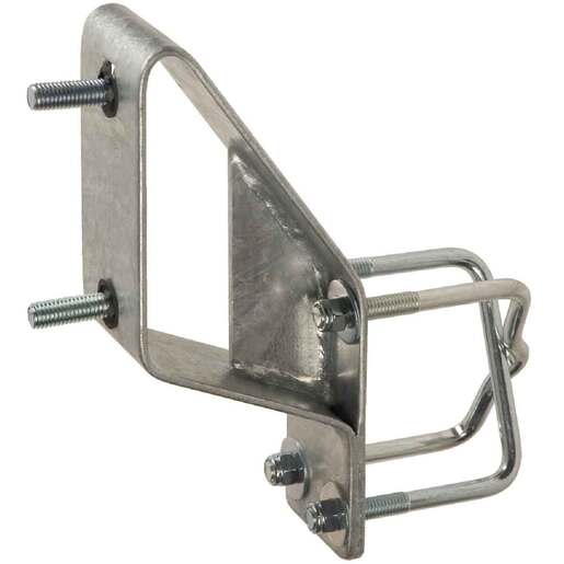 C.E. Smith Heavy Duty Side Mount Boat Trailer Spare Tire Carrier - Perfect for mounting your spare tire vertically to the side of trailer tongue or frame rails. This sturdy spare tire carrier mounts to the trailer tongue in the front of the trailer. The offset design moves the tire and wheel up and away from the trailer frame to improve ground clearance. No drilling is required to install the carrier because the included U-bolts clamp the carrier to the trailer frame. The crisscross design increases the holding power of the U-bolts. Mouting u-bolts may be crossed to fit shorter frames or may be installed parallel for more reach. 3/16in thick galvanized steel Fits frames up to 4in tall by 1in up to 3-1/2in wide Holds either 4 or 5 lug wheels that are up to 15in Not compatible with 5-on-5in or 5-on-5-1/2in bolt pattern Extra heavy duty welded steel construction for worry free trailering Offset height raises tire and provides additional ground clearance Vertical offset= 5in Side offset= 4-1/2in Comes complete with all zinc plated hardware