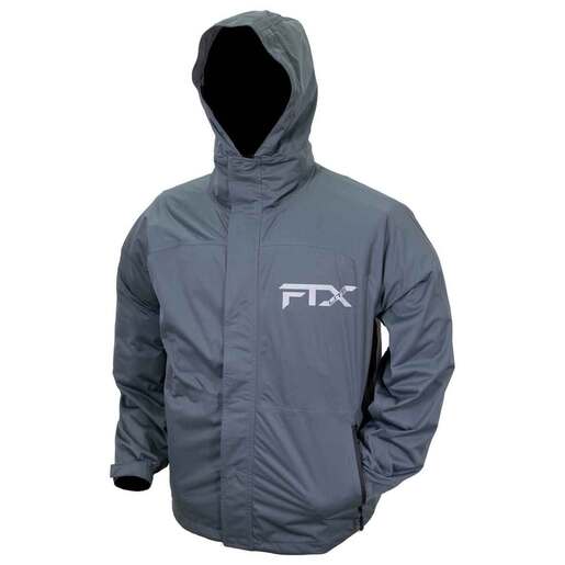 Frogg Toggs Men's FTX Lite Casual Rain Jacket - This jacket keeps you dry and protected all season long. 10,000 water holdout / 10,000 MVTR breathability Attached hood with drawstring and hook-and-loop adjustment External storm flap with hidden metal snaps Water resistant zippers Pit-zip ventilation Two hand warmer pockets Elastic cuff with hook-and-loop adjustable wrist closure Adjustable waist with drawstring Includes self-fabric, self-color stuff sack Style: 1FL611