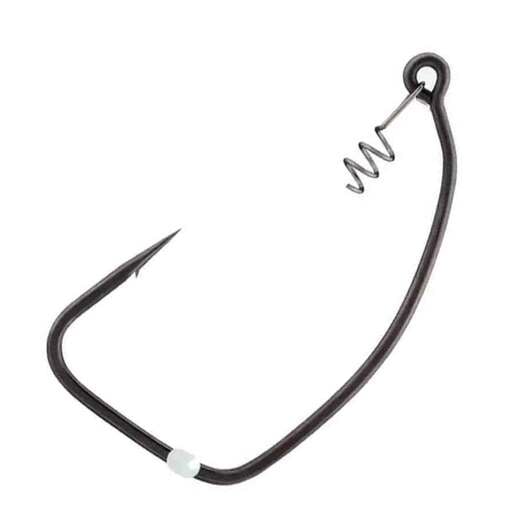 BKK TitanRider Jig Hook - The TITANRIDER is designed for weedless-style rigging of large soft plastic baits such as big swimbaits and tubes. More than one year of field tests with different species underlie the construction quality and the versatility of the hook. The hook is equipped with a locking spring that securely holds baits in place and allows anglers to easily add or remove soft baits. An adjustable silicon stopper keeps soft plastics in position during casting whilst allowing for sliding down the hook when fish strike. Furthermore, a deep throat features a much longer hook point section that penetrates farther into the fish’s mouth for a more secure hookset. BKK’s unique Super Slide coating of the hook enhances penetration capability and reduces friction to the minimum level. The TITANRIDER is the best hook for those anglers that do not want to compromise on the hook up rate when weed-less fishing with soft plastic lures.