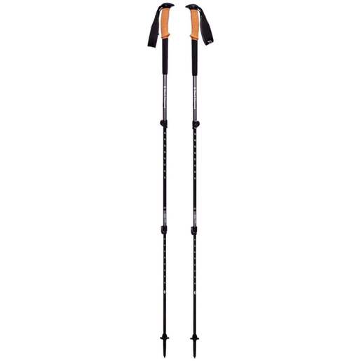 Black Diamond Trail Cork Trekking Poles - Pair - The Black Diamond Trail Cork is built for 4-season versatility and expertly balances comfort, features and durability. The premium 100% natural cork grip is designed for ultimate comfort while the dual FlickLocks offer complete adjustability to suit the terrain. The interchangeable carbide Tech Tips are easily swapped for our Rubber Tech Tips (sold separately) to accommodate changing trail surfaces and included both trekking and snow baskets for 4 season versatility. Features 7075 Aluminum shafts Soft-touch ergonomic grip top with 100% natural cork grip and EVA foam grip extension Fusion comfort strap for premium support FlickLock adjustability Interchangeable tech tip compatible with carbide tech tips included 4 season flex tips with both trekking and snow baskets included Usable length is 100-140cm