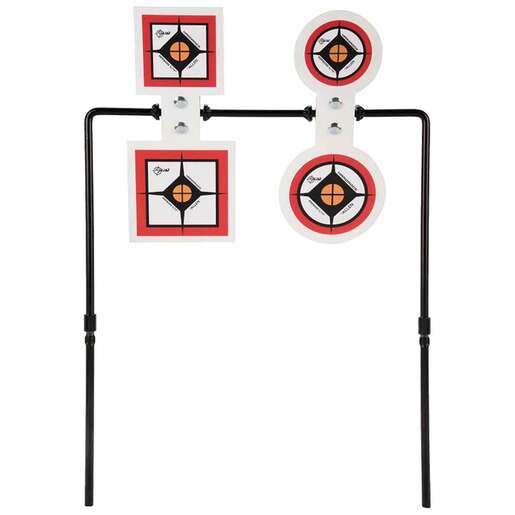 Allen EZ Aim Hardrock AR500 Double Spinner Targets with Stand - The EZ Aim AR500 Hardrock double spinner is designed for use with any rimfire or high power rifle or handgun. Handguns should be used at 30ft, rifles at 100yrds. The AR500 target faces are made from 1/4in Armor Plate Steel. There is a round and a square spinner target. Each has a 4in top and 5in lower target. Solid steel frame. Designed to fit with Allen Custom Target System brackets. Product Features AR500 Armorplate Steel Solid Steel Frame White powdercoat finish One Square and one round format target Each target has a 4in top and 5in bottom target Horizontal braces keeps frame upright Fits Allen Custom Target System Brackets