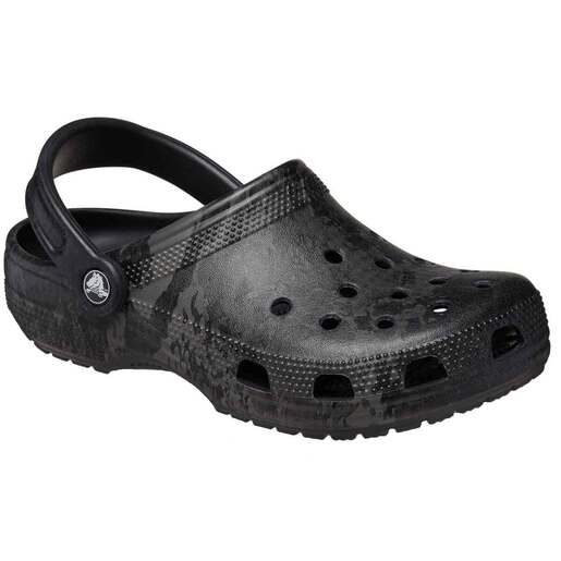 Crocs Men's Classic Veil Clogs - Who needs solid colored crocs when you can get the all day comfort of the classic design with a fun textured look. Still sporting the signature ventilation ports of Crocs, these shoes allow breathability while out on a walk or easy water drainage when playing in the water. Lightweight and fun to wear Water-friendly and buoyant Easy to clean and quick to dry Easy on/off Pivoting heel strap for a more secure fit Style: 209359