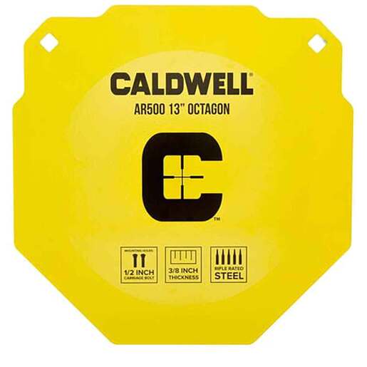 Caldwell AR500 Steel Octagon Gong Target - Caldwell’s new bright, easy-to-see targets come in all shapes and sizes for competition, training, and recreational use. Made of AR500 hardened steel, these targets can withstand thousands of rounds. Rated up to a 3000fps impact velocity and a 3500 ft-lb impact energy, these targets come in seven various sizes with three hanging solutions.