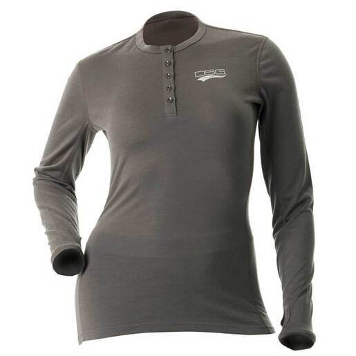 DSG Outerwear Women's Marino Wool Long Sleeve Base Layer Shirt - Ultra cozy, the new Merino Wool Base Layer Shirt is perfect for layering so you stay toasty warm for any outdoor activity when worn in tandem with the Merino Wool Base Layer Pant. Quarter Button at front center Embroidered DSG logo on left chest Crew neck Double Stich Regualr Fit Style: 45213