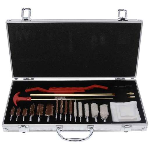 Birchwood Casey Premium Gun Cleaning Kit - Works on handguns, rifles, shotguns, and AR-15's. Includes: Bronze Brushes: 1 - .38-9mm Caliber, 1 - .40/10mm Caliber, 1 - .45 Caliber, 1 – 410 Shotgun, 1 – 20-Gauge, 1 – 12-Gauge, 1 - .22 Caliber, 1 - .25 Caliber, 1 - .270 Caliber, 1 - .30 Caliber Cotton Mops: 1 - .22 Caliber, 1 - .38/9mm Caliber, 1 - .410 Shotgun, 1 – 20-Gauge, 1 – 12-Gauge Non-Woven Patches: 25 – 1.5in, 25 – 2.0in, 25 – 3.0in Utility Brushes: 1 – Bronze Utility Brush, 1 – Nylon Utility Brush Brass Cleaning Rod Adapters: 2 – Brass Adapters (Male 8-32 to Female 5/16-27, Male 8-32 to Female 8-32) 2 – Nylon Patch Holders (Thread Male 5/16-27, Thread Male 8-32) Solid Brass Cleaning Rods: 1 – Brass Rod with T-Handle, 2 – Brass Rods
