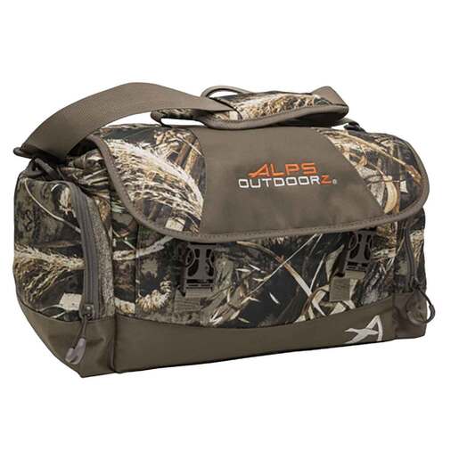 ALPS Outdoorz Floating Blind Bag - Realtree Max-5 - The Floating Blind Bag is a great option for the no-frills duck hunter. The main compartment is constructed of non-absorbing, closed-cell foam and sealed with a waterproof membrane that will keep your gear dry when sitting in water or mud. There is an interior divider to separate your gear in the main compartment, as well as two side and one front pocket to give you additional storage. Three choke tube sleeves in the main compartment ensure they are always readily available, and a padded carry handle and shoulder strap make transporting your gear a breeze. Waterproof sealed membrane for the main compartment Non-absorbing closed-cell foam Interior divider Two side pockets and one front pocket for additional storage Choke Tube Holders Carry handle and padded shoulder strap