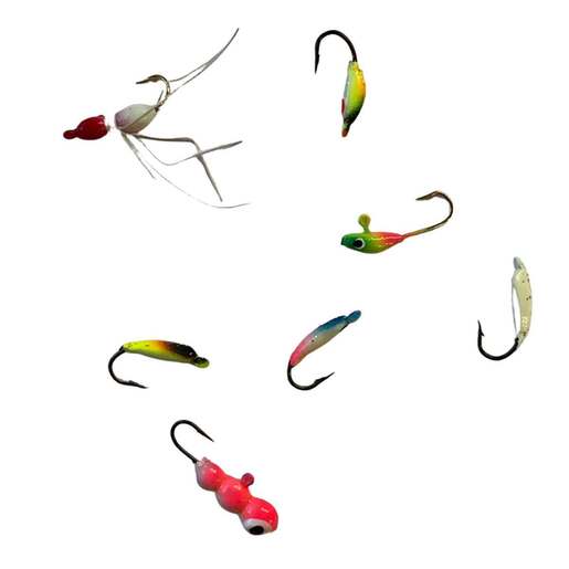 JB Lures Panfish Ice Fishing Lure Kits - This collection of Panfish lures will entice Crappie, Bluegills or Perch. Vibrant colors which glow in the dark and a variety of styles. Eight lures in a kit. Kits come in #8 Hooks or #10 Hooks. Great for gifts or Stocking Stuffers!