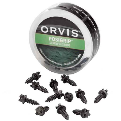 Orvis PosiGrip Screw-In Wading Studs - 24 Pack - PosiGrip Screw-In Studs add traction to the soles of your favorite wading boots in moments. Aggressive tungsten carbide-tipped PosiGrip Screw-In Studs that can be added to any wading boot with at least 1/2in of midsole depth. Sharp tip allows for quick and easy installation into felt or rubber outsoles. A must where maximum traction is needed. 1/4in hex head screws. Adapter for power drill included. Screw-in studs with exclusive tungsten-carbide tips 24 studs per package Adapter for power drill included Style: 9T1G1000