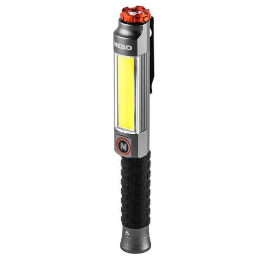 NEBO Big Larry 3 Combo Flashlight - This third generation innovative work light and flashlight offer upgraded performance and the same reliability you’ve come to expect from Big Larry. Get more done with less tools thanks to the 7 light modes, 600 lumen work light, 220 lumen flashlight and 40 lumen red task light. With useful features like variable dimming, Direct-to-Red, Power Memory Recall, and a strong magnetic base you have a light that works for you and your unique lighting needs. The Big Larry 3 is designed to last, with an aircraft-grade aluminum construction and rubber grip provides impact-resistant drop protection. Carry it in a pocket or on a belt with the sturdy steel belt clip. When not in use, you can hang it on a wall with the integrated wall-mount hole or attach it to any metal surfaced with the powerful magnetic base. Battery powered with three AA batteries (included).