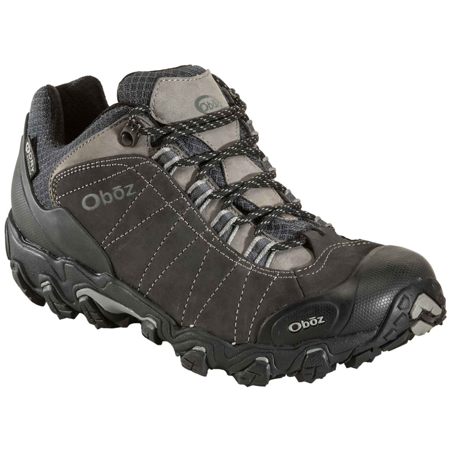 Oboz Men's Bridger Waterproof Low Hiking Shoes - New heights aren’t always higher. The Bridger Low Waterproof provides all the technology and construction of our flagship hiker, but in a lower package. You get the same great comfort, TPU chassis support, and B-DRY waterproof technology - just don’t step in those deep puddles. Length runs true to size Waterproof Nubuck leather & highly abrasion-resistant textile O FIT insole technology delivers the kind of fit, feel and performance that’s unmatched in the industry Single-density EVA provides cushioning and comfort Granite Peak Outsole is a quintessential hiking outsole built to be supportive and protective The proprietary waterproofing system, B-DRY, lets sweat escape while keeping moisture out Style: 22701