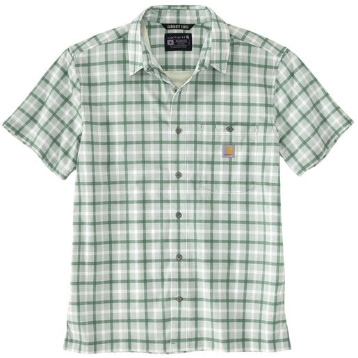 Carhartt Men's Force Sun Defender Lightweight Relaxed Fit Short-Sleeve Work Shirt - Taking measurements, finishing paperwork, or relaxing after a long day, this men's short-sleeve plaid shirt is perfect for a hot summer's day. It's made with an ultra lightweight, UPF-50 rated jersey that blocks sun, fights sweat, and dries quickly to keep you cool and focused. 100% polyester Built to move with Rugged Flex stretch technology Carhartt Force fights odors FastDry technology wicks away sweat to keep you cool Force Sun Defender UPF 50+ UV protection Spread collar Left-chest pocket with button closure and sewn-on Carhartt label Back vent and under arm eyelets for breathability Shorter length can be work tucked or untucked Model height 6'1; wearing size Medium Center back length (medium, regular length): 29in Style: 106167