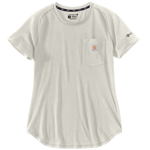 Carhartt Women's Force Relaxed Fit Midweight Pocket Short-Sleeve Work Shirt - An everyday tee with Carhartt pride, this women's short-sleeve t-shirt keeps you cool and comfortable on the job or off. 60% polyester/40% cotton Built with Force technology to wick sweat, dry fast, and fight odors FastDry technology keeps you cool for all day comfort Rib-knit crewneck holds its shape throughout the day Mesh sleeves and back for added breathability Chest pocket Droptail hem for added coverage UPF 25+ Style: 106650