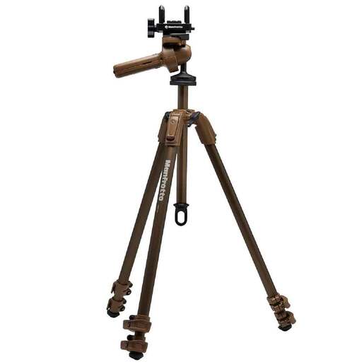 Manfrotto AlphaS.H.O.T Tripod Grip Kit - The Manfrotto AlphaS.H.O.T Grip Kit is great for users who need a lightweight supportthat doesn’t sacrifice rigidity or stability. The revolutionary design of the grip head gives you the freedom to position your rifle or optic like never before. With one hand you can unblock, move, position and lock your equipment thanks to the ergonomic grip handle. The secure saddle mount with triple locking feature accommodates a 17.5 lb payload, and is lined with rubber to prevent scratches on gear. The one handed grip allows fast adjustments and is compatible for both left and right hand use. The lock mechanism comes equipped with friction control, so users can ensure everything is tightly in place when in position. A built in bubble spirit level gives added accuracy when using on uneven terrain. The center column mechanism is easily extendable thanks to the lever on the tripod, which means that the shooting height can be changed quickly and easily with a single movement. The tripod legs are compatible with both rubber and spiked feet to ensure maximum stability in any condition. (Both sets of feet included.) The best 2-in-1 support solution for both shooting and observing! Made in Italy Perfect for working with rifles or scopes Durable and precise to handle rugged shooting applications Low profile and compact for carrying Secure saddle mount with triple locking mechanism Kit payload: 17.5lbs Tripod payload: 33lbs Unique grip head can be controlled with one hand Rapid attachment and detachment to rifle or scope Grip head is configurable for right or left hand use Includes bubble spirit level Tripod includes hook for weight bag attachment Standard rubber feet and spiked feet included 26mm Aluminum tube diameter Weighs 7lbs Max shooting height: 65 in