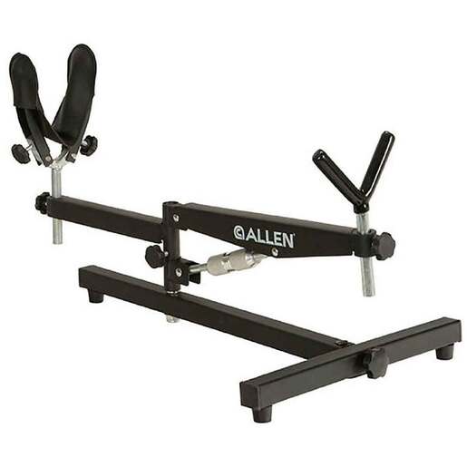 Allen Company Rangemaster Shooting Rest - Sight in your rifle with the Rangemaster Rifle Rest by Allen. The Rest features adjustable height rubber-coated rests for the fore-end and buttstock and rubber feet to prevent sliding. Comes complete with a vise clamp system for use on the workbench to make cleaning firearms easier. The Rangemaster Rifle Rest can be taken down easily and stored away when not in use. Vise Clamp System Adjustable Height Rubber Coated Rests for the Fore end and Buttstock Rubber Feet to Prevent Slippage