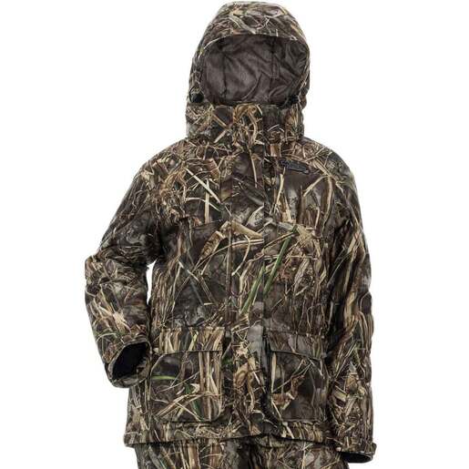 DSG Outerwear Women's Max-7 Kylie 5.0 3-in-1 Hunting Jacket - This women's 3-in-1 hunting jacket allows you to adjust for various temperatures by adding or removing layers to suit your specific needs. This jacket can be worn three different ways: with the removable fleece liner nested in the outer shell for ultimate warmth on the colder days, with the shell alone for slightly warmer days, or simply wear the fleece liner as a cute casual piece! Quiet brushed waterproof/windproof outer jacket DWR treatment to shed water off the face of the fabric 100% fully seal-taped seams Thin profile 120 gram insulation Adjustable and removable hood Grid fleece interior lining on upper torso chest, upper back, shoulders and collar Smooth taffeta lining in the lower torso, sleeves and hood Large center front YKK zipper with windflap which has hidden snaps 2 exterior zippered chest pockets, 1 interior zippered chest pocket Waist cinch internal drawcord Large cargo pockets with hidden snap closure flaps and side entry hand warmer pockets Interior lycra wrist gaiter with thumb hole Hook & Loop cuff adjusters Style: 50998-RTMAX7