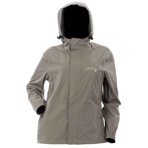 DSG Outerwear Women's Nova Hunting Rain Jacket - The Nova is a lightweight technical jacket that's comfortable, quiet, and light enough to pack up and take along on any adventure. Lightweight technical stretch fabric with 10,000mm MVT/10,000 MVT waterproof/breathable membrane Finished with DWR treatment to shed water on the face of the fabric and fully seal-taped seams YKK zippers Underarm ventilation Zippered pockets Fixed hood with cord adjusters Internal drawcord adjustment at hem Style: 513840