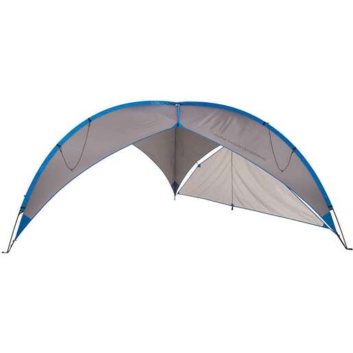 ALPS Mountaineering Tri-Awning Elite Canopy - The Tri-Awning Elite is based on the original Tri-Awning with a few key upgrades: Aluminum poles with shorter segments, additional mesh "sunshield," additional guy out points, and smaller pack size. It is a great item to bring along to almost any outdoor event, rain or shine. With endless height and area options, it can fit all your activity needs and help block the sun at different times of the day. Whether you're playing games, taking a break from the sun, or enjoying a picnic, the Tri-Awning Elite compacts so small, and sets up so easy, that it is going to become an item you want to bring to all your events. This awning uses an easy to assemble three-pole design. It includes a removable "sunshield" side fabric panel and "sunshield" side mesh panel for extra protection from the sun, wind, or rain. One side eave of the awning is taller so you have improved visibility. Weighing in at only 7 pounds, it is 2.5 pounds lighter than the regular version. Features: Easy-to-assemble aluminum three-pole design One side eave is taller for improved visibility Includes both fabric and mesh sun shield panels Center Velcro light loop and six auxiliary hang loops Two mesh pockets Fabric is UV-resistant 75D polyester with 1500mm multi-pass urethane coating Added guy out points, 12 total Stakes, guy ropes, and compression carry bag included 11 mm shock-corded 7000 series aluminum poles, 18" sections Variable height and width adjustment for best sun protection 15' x 15' x 15' (95 ft²) maximum size with 6' center height 13.5' x 13.5' x 13.5' (75 ft²) size with 6'6 center height