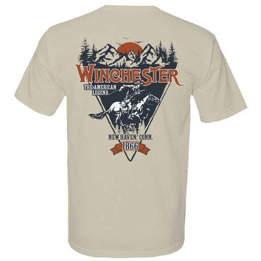Winchester Men's Lone Rider Short-Sleeve Casual Shirt - Designed for all-day comfort, this shirt will quickly become a staple in your tee shirt drawer. 100% cotton Crw neck Graphic design on the back Small logo on left chest Style: SS398