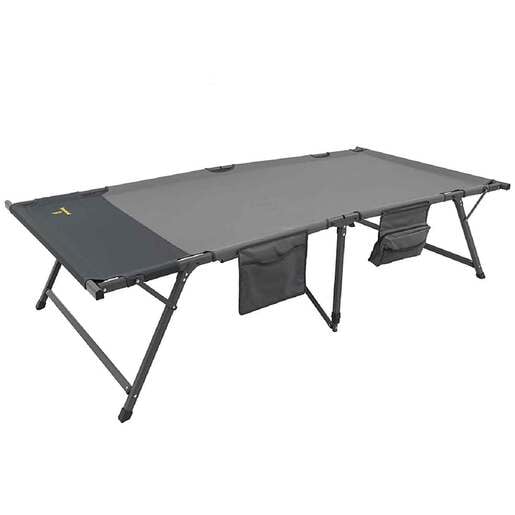 Browning XL Titan Cot XP - When you're away from your bed, make sure you still get a good night's sleep. With a Browning Camping cot, you're sure to do just that. The cot has sturdy steel connectors combined with 600D polyester fabric to make your bed-away-from-home as comfortable as possible. It has an aluminum frame making it lightweight, but strong. The detachable side pocket is nice so you can keep your small items close at night and then bring them along with you when you wake up in the morning. Another nice feature is the large, velcro "pillow" pocket that you can store clothes or other padding in to create a headrest at the height you prefer. The angled legs keep the cot from "rocking" at night and the telescoping support in the center makes the cot even more strong than the traditional x-leg cot. It folds up easily and fits into a carry bag so it transports and stores easily when not in use. Features: Rock-solid design – much stronger than X-leg cots Angled end legs prevent "rocking" Side bar support for added strength Extra telescoping center support Detachable side pocket and large "pillow" pocket 600D polyester fabric Pro-Tec powder-coated aluminum frame Sturdy steel connectors