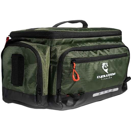 Evolution Outdoor 3700 Smallmouth Soft Tackle Bag - Introducing the 3700 Smallmouth Tackle Bag, the perfect storage solution for anglers who need a reliable and practical way to organize their fishing gear. This tackle bag is crafted from ripstop polyester, a durable and high-quality material that can withstand the rigors of any fishing trip. The bag features a PVC zipper pocket under the lid, which is perfect for storing small items like hooks, weights, and other accessories. It can hold up to 4-3700 trays, providing ample storage space for all your fishing essentials. The convenient top carry handle provides a comfortable and secure grip, making it easy to transport your gear to and from the water. On one side of the bag, there's a plier holster, providing a convenient place to keep your tools within reach. On the opposite side, there's a rubberized mesh pocket, which is perfect for storing items like soft plastics or a water bottle. The front of the bag features a zipper slash pocket, which provides additional storage space for your gear. There are also two mesh sleeves in the front pocket, perfect for organizing smaller items like leaders. Overall, the 3700 Smallmouth Tackle Bag is a top-quality storage solution for anglers who demand the very best in functionality and durability. With its wide range of features and ample storage space, it's the perfect choice for any fishing trip, whether you're headed out for a day on the water or a weekend getaway. Dimensions: 18.75in L x 9.5in H x 8in D Ripstop polyester construction for superior durability Convenient PVC water-resistant pocket for valuables Holds up to four 3700 trays provides ample storage (includes 3 trays) Equipped with a convenient top carry handle for easy transport Quick Access Plier Holster Rubberized mesh pocket additional storage options Front zipper slash pocket for organizing small items Color: Olive Drab Green
