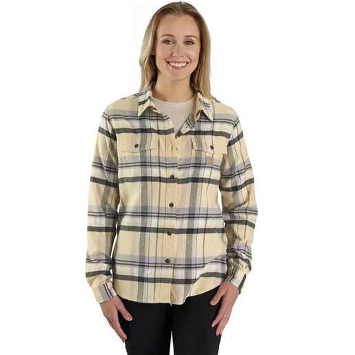 Carhartt Women's Tencel Fiber Flannel Long Sleeve Casual Shirt - If you like your flannel with a little extra flex, this Tencel women's flannel shirt provides built-in stretch for full mobility.The cotton-blend fabric is super comfortable whether you're rolling up your sleeves to work or meeting friends for a night out. Built to move with Rugged Flex stretch technology Built with lightweight TENCEL fibers for incredible softness Breathability and durability Button front Two flap chest pockets with button closures Length: 28in Style: 106447