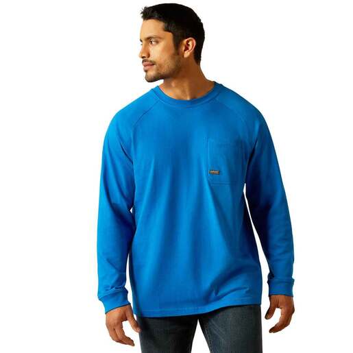Ariat Men's Rebar Cotton Strong Graphic Long Sleeve Work Shirt - Rebar CottonStrong shirts feature ultra-comfortable yet equally durable cotton jersey that is pre-washed to prevent shrinkage. A ribbed collar, droptail hem and screenprint neck label make it a perfect everyday go-to T-shirt. Greater Arm Mobility seam construction for maximum range of motion Screen printed sleeve logo Ribbed crewneck and cuffs Raglan construction Hidden pen slot 100% cotton Style: 10052860
