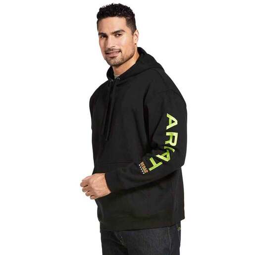 Ariat Men's Rebar Graphic Work Hoodie-Keeping you warm and dry so the work gets done, this hoodie is up for any job and every season. Comfortable, durable, stain resistant, and water repellent, they’re perfect for cool mornings and transitional weather. Greater Arm Mobility lets you move freely Stain repellent Water repellent Ribbed cuffs and hem Embroidered logos Kangaroo pocket Style: 10032993