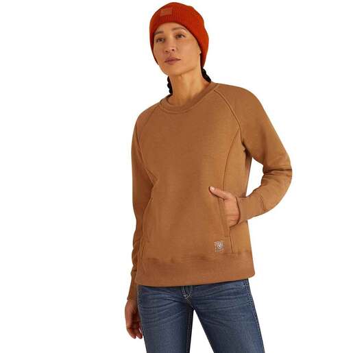 Ariat Women's Traverse Work Sweatshirt - Designed for the modern woman who values both comfort and performance, this women’s work sweatshirt is the perfect blend of practicality and style. Ribbed collar, cuffs, and hem Embroidered sleeve logo Welt hand pockets with jersey lining 283g fleece with water-repellent finish Style: 10053021