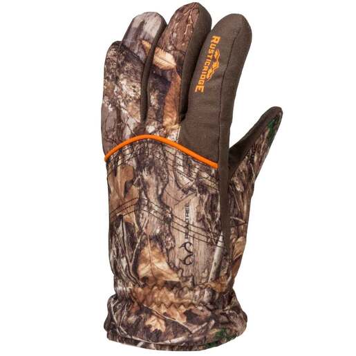 Rustic Ridge Men's Realtree Edge Insulated Hunting Gloves - Keep your hands dry, warm and ready to perform through even the most wicked late-season storms with these hunting gloves. Non-slip grip palm Adjustable wrist cinch Rustic Ridge logo on the pointer finger Style: 0E-206