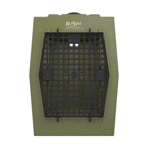 Ruff Land Single Door Dog Kennel - Designed with straighter sides this kennel can fit through narrow doorways such as campers. Vent hole pattern displayed comes standard (1 3/8in) with two finger holes in the back. All kennel sizes are outfitted with strong, composite doors that have a tighter grid pattern to prevent biting and chewing.