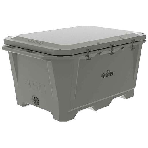 Grizzly 450 Quart Hard Cooler - At 450 quarts, the Grizzly 450 is an absolute monster. Whether you’re preparing for a huge hunt or packing out a huge haul, Grizzly Coolers has got your back with maximum cooling capacity. Pack in over 720 cans plus room for ice for your next big event. Speaking of ice, feel free to sink in to the 450 as an ice bath to maximize recovery after a hard workout, or just a hard day. Grizzly Coolers deep and wide configuration allows plenty of space for you to fully chill with plenty of ice and water. Features RotoTough rotationally-molded construction Environmentally friendly pressure-injected insulation Molded-in heavy duty handles and hinges Triple latching system Dual 2in drains with drainage system Embossed ruler on lid Integrated lid prop safety system on top edge of base Fork pockets Internal divider slots and shelf edge Lifetime Warranty IGBC Certified Made in the USA