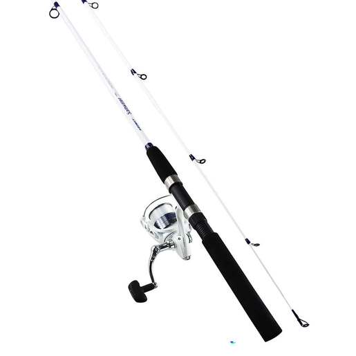 Ardent Saltwater Spinning Rod and Reel Combo 7'0" Medium Heavy Action Im6 Graphite Two-Piece Rod Split Grip EVA Handle 4000 size 4+1 high precision ball bearing reel Shielded Ball Bearings Stainless Steel Guides Multi Stack Drag System Anodized Aluminum Handle & Spool 5.1:1 High Speed Gear Ratio Line Capacity: 10lb/215yds, 12lb/160yds, 15lb/120yds