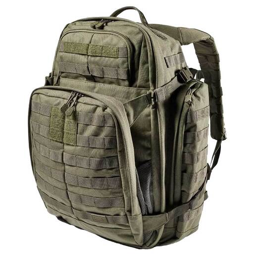 5.11 Tactical Rush 72 2.0 Backpack - Ranger Green - The RUSH 72 2.0 Backpack 55L is designed for individuals who need a reliable, extended-range bag for tactical missions, long-range deployments, multi-day outdoor excursions, or emergency bug-outs. This top-tier backpack offers an impressive 55 liters of space, allowing you to load up all your essential gear and keep it organized with a wide range of compartments. These designated compartments are perfect for storing electronics, survival gear, eyewear, hydration, clothing, camping equipment, firearms, pens, and documents. Constructed to withstand the most brutal environments, the RUSH 72 2.0 is an ideal choice for anyone who needs their critical gear to be easily accessible and secure on their back. The RUSH 72 2.0 Backpack features 5.11's signature Center Line design, a hidden CCW compartment with a loop panel, and a padded laptop sleeve that can accommodate up to a 15in laptop. The backpack also includes three zippered pockets in the main compartment, a rear hydration compartment, a front lower pocket with internal slip and zippered pockets, an admin org, and a top zippered pocket with a 6x1 name tape and internal pocket. Built with 1050D nylon (1000D MultiCam nylon), the RUSH 72 2.0 offers external front and side web MOLLE with 3x3 loops, making it compatible with 5.11's Tier System. Additional features include a fleece-lined eyewear/media pocket, dual external side zippered pockets, a contoured yoke shoulder strap system with web MOLLE, a reinforced back panel with an aluminum stay bar, a waist strap, and bottom panel web gear loops. 5.11’s signature Center Line design Hidden CCW compartment with loop panel Padded laptop sleeve (up to 15in) and three zippered pockets in main compartment Rear hydration compartment Front lower pocket with internal slip and zippered pockets, admin org Top zippered pocket with 6x1 name tape and internal pocket Built from high strength, water-repellant 1050D nylon (MultiCam 1000D nylon) Shove-It compartment with side gussets External front and side web MOLLE with 3x3 loop Rush Tier System compatible integrates with other RUSH bags (Sold Separately) Fleece lined eyewear/media pocket Dual external side zippered pockets Contoured yoke shoulder strap system with web MOLLE Reinforced back panel with aluminum stay bar, waist strap Dimensions: Main Compartment - 23in H x 13.5in L x 8.5in D Front pocket -15.5in x 11.5in x 2in 3L Hydration pocket - 21in x 13.5in Left and Right Side Pockets - 16.5in x 6in x 1.75in Total Capacity - 3342 cubic inch / 55 liter Weight -2.4kgs