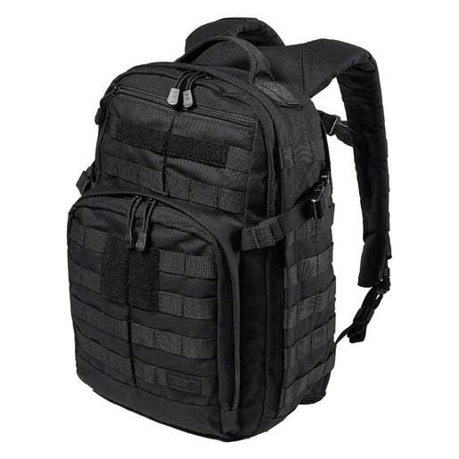 5.11 Tactical Rush 12 2.0 Backpack - Black - Introducing the RUSH 12 2.0 Backpack, an upgraded version of the original RUSH 12, designed to be one of the most universally adaptable packs on the market. With its enhanced features and improved design, this 24-liter backpack is perfect for outdoor activities, duty applications, and daily use, making it the ideal companion for those who need a reliable and versatile pack. The RUSH 12 2.0 Backpack boasts a hidden CCW compartment, an expanded eyewear pocket, a padded laptop sleeve, and rear hydration tube ports. These upgrades offer more versatility and make the RUSH 12 2.0 a highly functional and adaptable backpack. Built from high-strength, water-repellent 1050D nylon (MultiCam 1000D nylon), the RUSH 12 2.0 is designed to withstand the rigors of daily use and outdoor adventures. The front lower pocket features internal slip and zippered pockets, as well as admin organization, while the front top zippered pocket provides additional storage options. With external front and side web MOLLE, 6x1 name tape, and 3x3 loop, this backpack offers customization options to suit your needs. The fleece-lined eyewear/media pocket ensures your valuables are protected, while the padded laptop sleeve and dual mesh pockets in the main compartment provide secure storage for your electronic devices. The hidden CCW compartment with loop panel adds an extra layer of security, and the rear hydration compartment ensures you stay hydrated on the go. The RUSH 12 2.0 Backpack features a contoured yoke shoulder strap system with web MOLLE for comfort and adaptability, and bottom panel web gear loops for additional attachment options. This backpack is also compatible with the 5.11 Tier System, allowing you to customize your bag with purpose-built pouches. Experience the ultimate in adaptability and versatility with the RUSH 12 2.0 Backpack 24L. 5.11’s signature Center Line design Front lower pocket with internal slip and zippered pockets, admin org Built from high strength, water-repellant 1050D nylon (MultiCam 1000D nylon) Front top zippered pocket External front and side web MOLLE with 6x1 name tape and 3x3 loop Fleece lined eyewear/media pocket Padded laptop sleeve and dual mesh pockets in main compartment Hidden CCW compartment with loop panel Rear hydration compartment Contoured yoke shoulder strap system with web MOLLE Bottom panel web gear loops Dimensions: Main Compartment - 18in x 11in x 6.5in Bottom Front pocket - 12in x 9in x 1.75in 1.5 Hydration pocket - 16.5in x 10in Total Capacity - 1,476 cubic inch / 24 liter Weight - 3.15 lbs Fits up to a 15in laptop