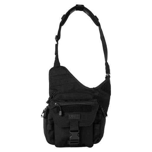5.11 Tactical PUSH Pack 6L Range Bag - Flat Dark Earth - The PUSH (Practical Utility Shoulder Hold) Pack is a transportation heavyweight in a compact messenger style bag. If you travel frequently and need a reliable carryall with tactical utility, this is your bag. The PUSH Pack features a main compartment, expandable side compartments, a rear TacTec compatible pocket, and MOLLE and SlickStick compatible slots on the sides. And with a hook-and-loop nametape and flag holders for quick ID, the PUSH Pack can be your number one grab-and-go. Imported. Covert TacTec CCW pocket MOLLE/5.11 SlickStick web platform exterior Fully adjustable padded shoulder strap with removable pad Roomy main compartment with admin/accessory org Top and front external zippered pockets Dual expanding zippered side pockets Slip pocket on shoulder strap connection panel Front pocket with flap and S/R buckle closure Webbing adjustable belt loop on the back panel Drain holes and gear loops on the bottom panel Name tape and flag/patch loop platform Customize your bag with purpose-built pouches 1050D Nylon 8.75” H x 7.75” L x 4”D main compartment 1.31”H x 7.75”L x 3”D top pocket 7.75”H x 4”L x 1.5”D left and right side pockets 395 cubic inch / 6-liter total capacity