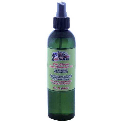 Pro-Shot Pro Clean Gun Cleaner#1 8oz Pump Spray Bottle - Pro-Clean Gun Cleaner#1 deep cleans down to the pores of the metal and conditions metal to resists future fouling build-up. Pro-Clean meets the demands of competition shooters, military, law enforcement, and shooting enthusiasts by providing advanced cleaning technology. Removes Carbon, Firing Residue, Oil & Grease, Powder, Lead & Copper Fouling Provides Superior Protection with Rust and Corrosion Inhibitors Reduces Cleaning Time and Improves Accuracy and Reliability ** BIODEGRADABLE FORMULA ** NON-TOXIC ** NON-HAZARDOUS *