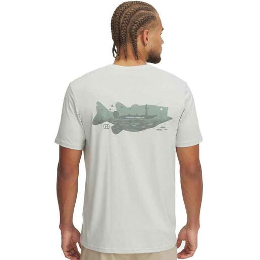 Under Armour Men's Bass Short-Sleeve Casual Shirt - Everyone makes graphic Ts...but Under Armour makes them better. The fabric UA uses is light, soft, and quick-drying. This shirt features fishing-inspired graphics for the avid angler. Super-soft, cotton-blend fabric provides all-day comfort Ribbed collar Main body fabric contains at least 40% recycled polyester, excluding trims & embellishments Style: 1390218