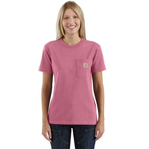 Carhartt Women's Heavyweight Short-Sleeve Work Shirt - Carhartt's pocket t-shirt debuted in 1992, and it became a fast favorite among the hard-working folks who pulled it on. This women's shirt has the same heavyweight cotton that earned the K87 its reputation as the working man's tee, but now with a cut that's all you. Rib-knit crewneck holds its shape throughout the workday Left-chest pocket with sewn-on Carhartt label Tagless neck label for a smooth feel Side-seamed construction minimizes twisting Length: 26.5in Style: 103067