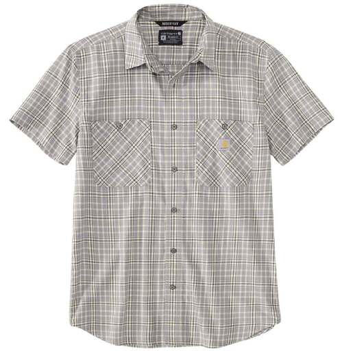 Carhartt Men's Rugged Flex Relaxed Fit Short-Sleeve Work Shirt - Taking measurments, finishing paperwork, or relaxing after a long day, this men's short-sleeve, plaid shirt offers flexibility on or off the clock. Built to move with Rugged Flex stretch technology Garment-washed for a soft finish and reduced shrinkage Triple-stitched main seams Spread collar Shorter length can be work tucked or untucked Two chest pockets with button closure Carhartt label on left chest pocket Center back length (medium, regular length): 30in