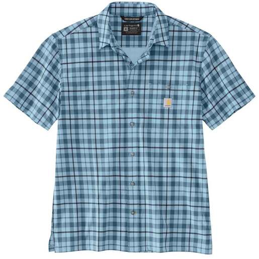Carhartt Men's Force Sun Defender Plaid Relaxed Fit Short-Sleeve Work Shirt - Taking on measurements, finishing paperwork, or relaxing after a long day, this short sleeve shirt is perfect for a hot summer's day. Built to move with Rugged Flex stretch technology FastDry technology wicks away sweat to keep you cool Anti-odor Force Sun Defender UPF 50+ UV protection Back vent and under arm eyelets for breathability Shorter length can be work tucked or untucked Left-chest pocket with button closure and Carhartt label Center back length (medium, regular length): 29in Style: 106747
