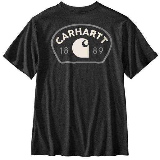 Carhartt Men's Relaxed Fit 1889 Graphic Short-Sleeve Work Shirt - Everyday comfort meets Carhartt toughness with this men's graphic short sleeve tee featuring a Carhartt 1889 graphic on the chest and back using a technique that seamlessly blends plastisol and high-definition ink, creating layers and achieving a faux embroidery look. Constructed from lightweight cotton-blend jersey with an easy, relaxed fit. Relaxed fit Rib-knit crewneck holds its shape throughout the day Side-seam construction minimizes twisting Carhartt 1889 graphic on left chest and back Carhartt label sewn on hem Tagless neck label for a smooth feel Style: 106769