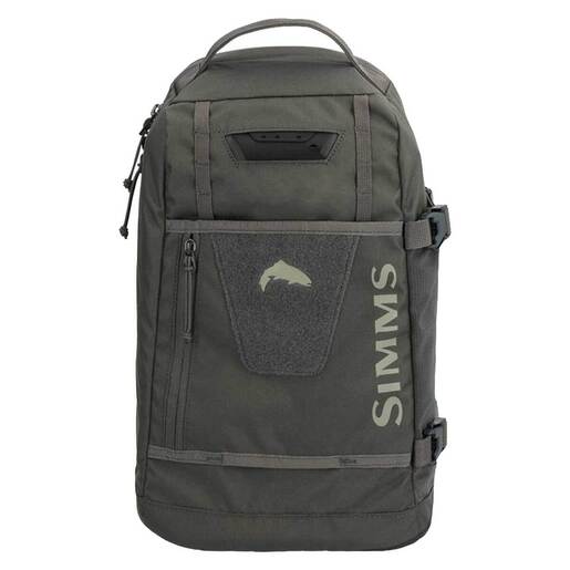 Simms Tributary Sling Pack - Tributary Sling Pack is the easy wearing, sized-right storage solution for productive days on the water. Rugged and durable 600D recycled polyester shell fabric with 200D polyester liner Lightweight and simple construction mimics Freestone Sling without ambidextrous functionality - right shoulder only. Streamlined, smooth exterior makes for minimized line catch and less bulk Large main compartment, small zippered exterior accessory pocket Fully integrated net sheath with daisy chain webbing for utility leash attachment Fully functional and ergonomically shaped shoulder strap with tool attachment port and adjustable sternum strap FABRIC TECH: 100% Recycled 600D Polyester with backside PU coating and face DWR treatment; 200D Polyester Liner