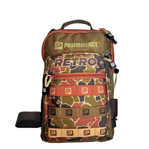 Profishiency Retro Green Sling Bag - Relive the nostalgia of fishing with the Retro Green Tackle Sling next time you hit the water! This 3-compartment tackle sling comes loaded with features and stands out from the competition! The Sling has a large tackle compartment with 1 utility box, and 2 front pockets for storage. The Retro Green Tackle Sling comes with adjustable cross body strap for left or right carrying , designed with ripstop water resistant fabric, and molle webbing for clipping on accessories. Includes a fish rod holder and easy zipper pulls. Includes (1) 3600 Storage Box Rip stop fabric Adjustable cross body strap