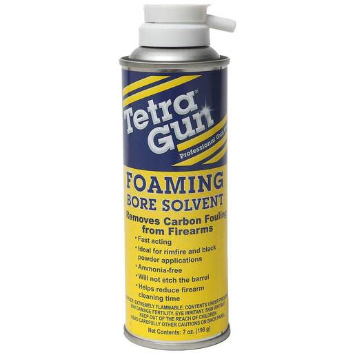 Tetra Gun Carbon Cleaner Foaming Bore Aerosol - 7oz - This foaming bore aerosol removes carbon fouling from firearm's bore surfaces. It quickly removes will preventing any etching on the barrel. FEATURES: Fast acting - just spray and swab out. Ideal for rimfire and black powder applications Ammonia-free - won't etch the barrel